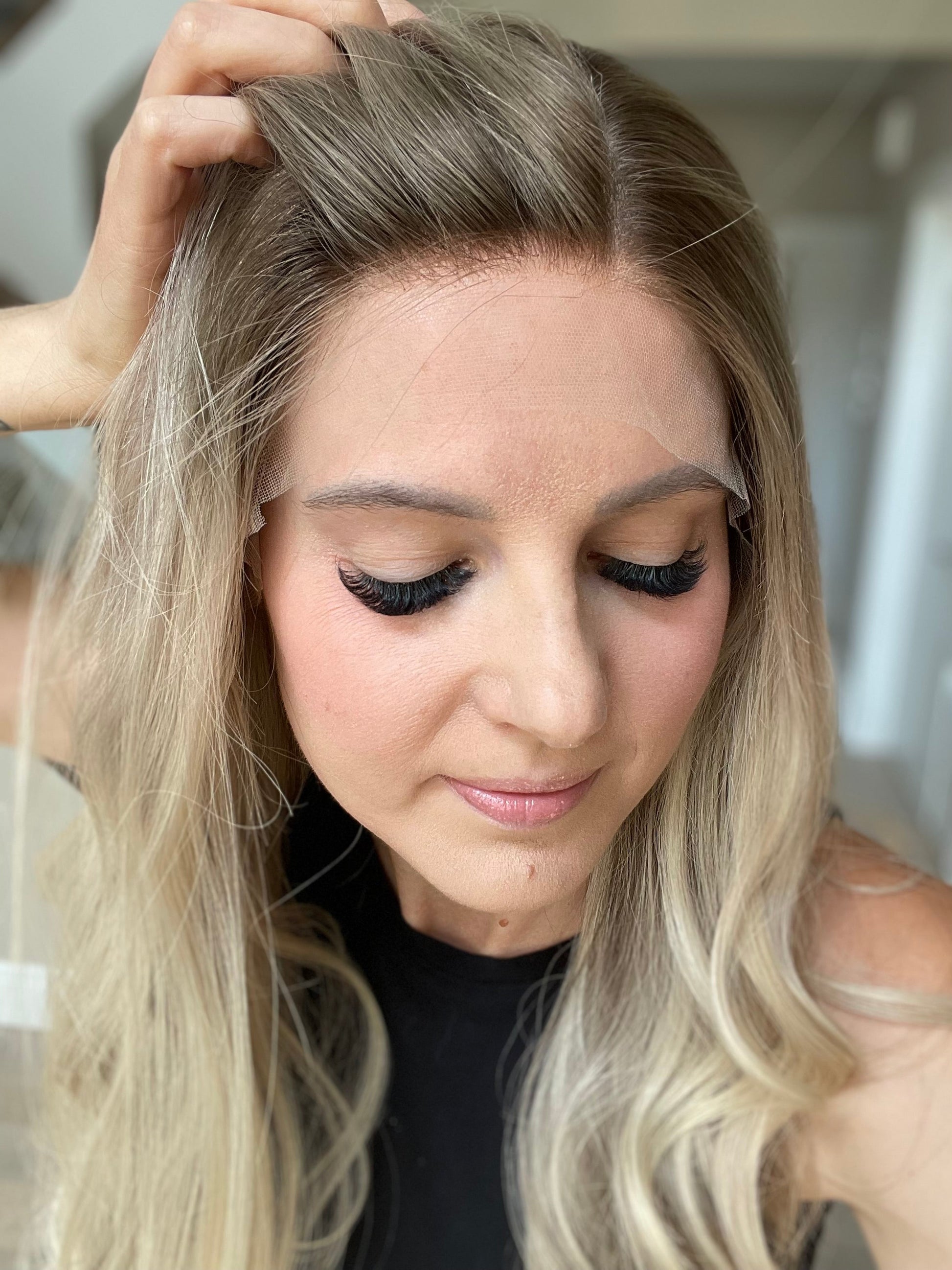 * Please note wig is shown with a small amount of face powder dabbed into the part-line for demonstration purposes. We recommend clients use powder rather than bleaching the knots as it extends the longevity of the wig and often looks more realistic.