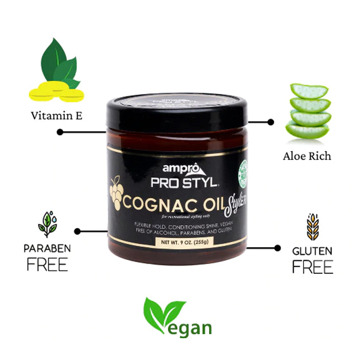 - Free of alcohol, parabens, protein, and gluten, our Cognac Oil Styler brings with it the natural and very complex fragrance of pure cognac oil