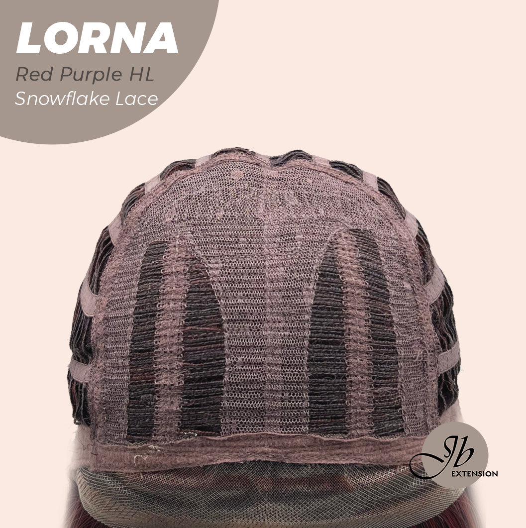 [PRE-ORDER] JBEXTENSION 18 Inches Red Purple Highlight Curly Pre-Cut Snowflake Lace Frontlace Glueless Wig LORNA SNOWFLAKE RED PURPLE HIGHLIGHT【PERMATEASE】【BENDY EAR TABS】