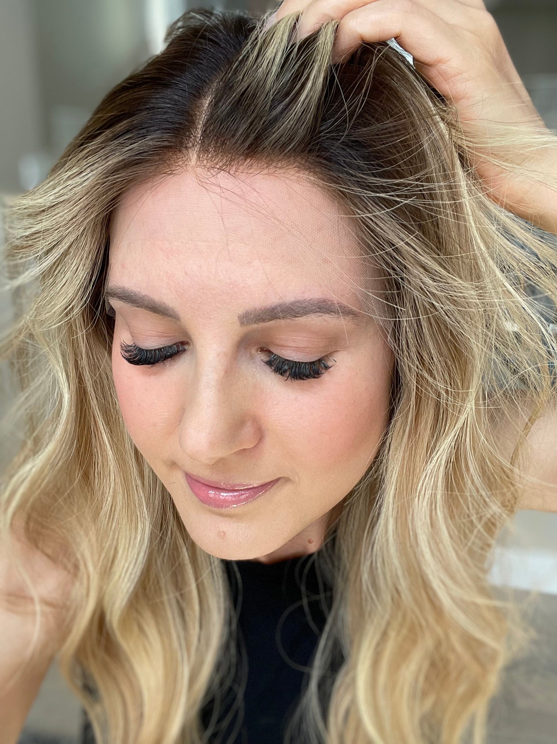 * Please note wig is shown with a small amount of face powder dabbed into the part-line for demonstration purposes. We recommend clients use powder rather than bleaching the knots as it extends the longevity of the wig and often looks more realistic.
