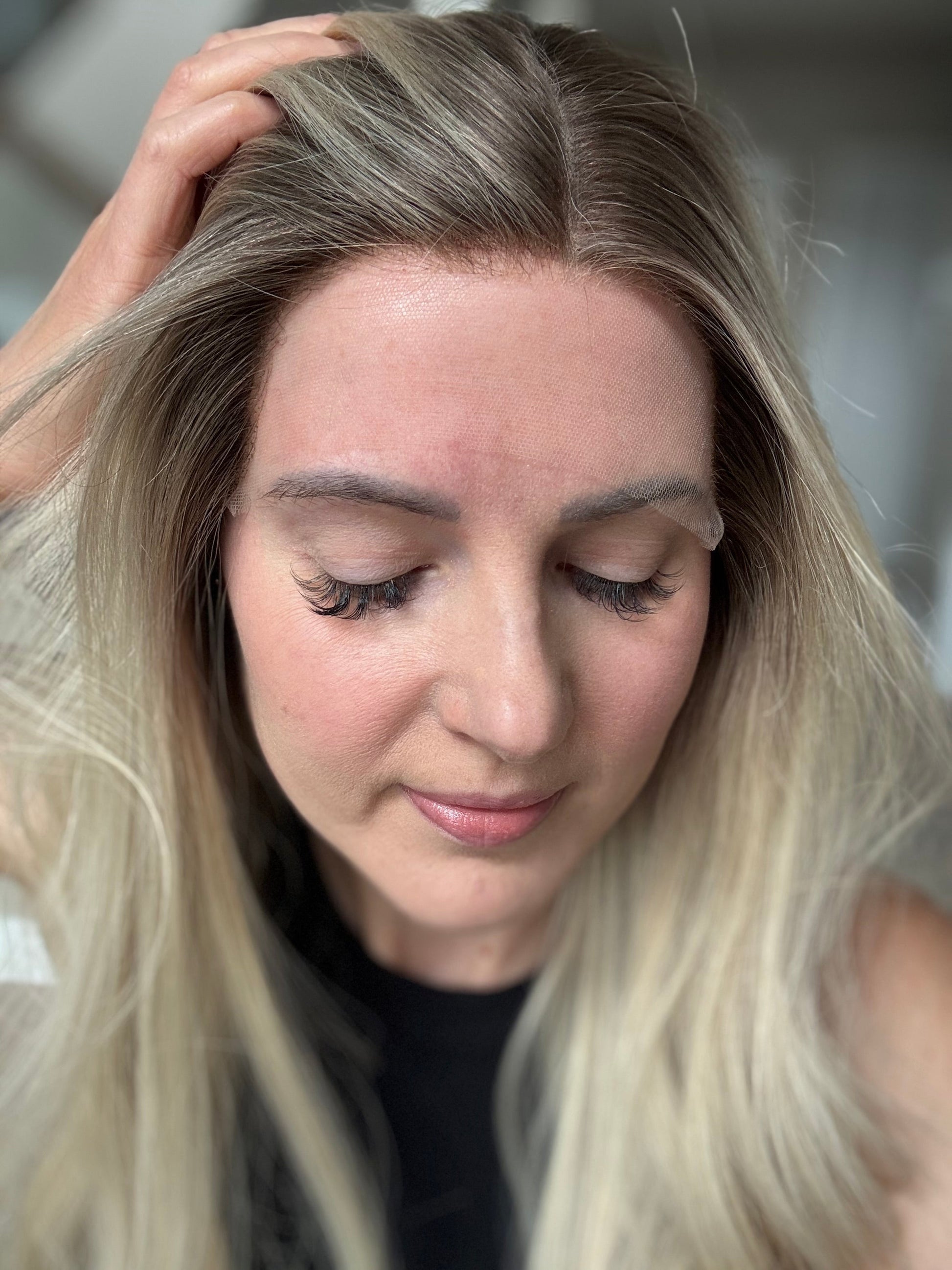 * Please note wig is shown with a small amount of face powder dabbed into the part-line for demonstration purposes. We recommend clients use powder rather than bleaching the knots as it extends the longevity of the wig and often looks more realistic.