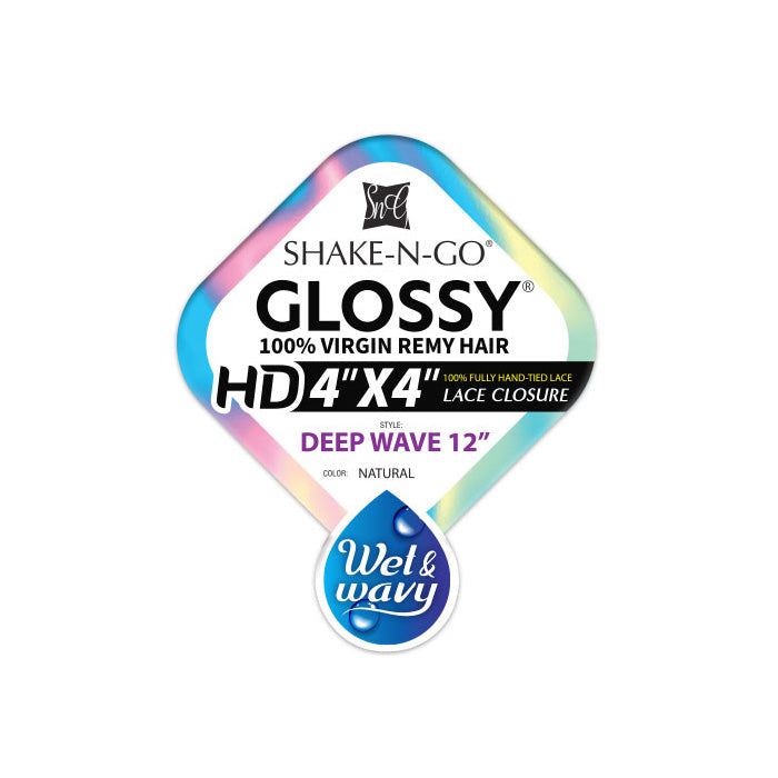 Shake N Go Glossy 100% Virgin Remy Hair HD 4x4 Hand-Tied Lace Closure - DEEP WAVE 12 - Wet & Wavy