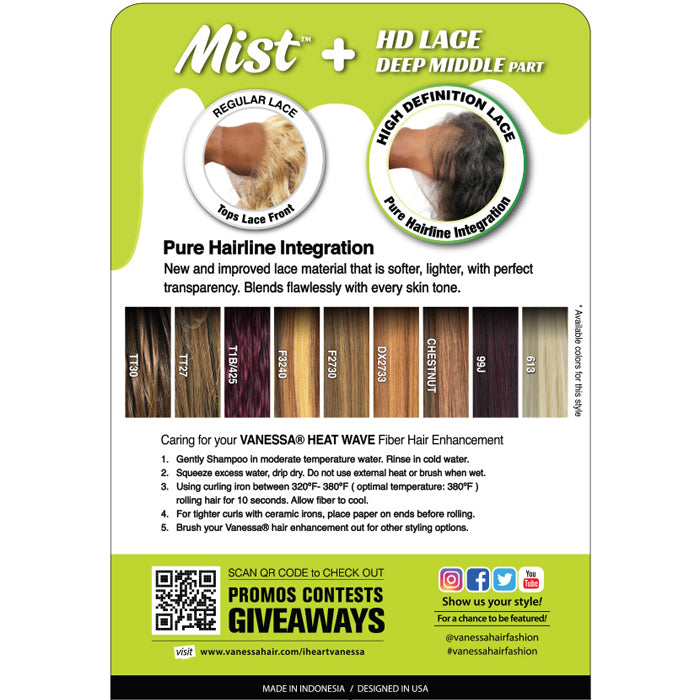 Vanessa Mist HD Deep Middle Part Lace Wig - GABA 40